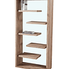 Estante tipo biblioteca fabricado en tamburato MDF revestido en folio símil madera, y aplicaciones en vidrio templado.